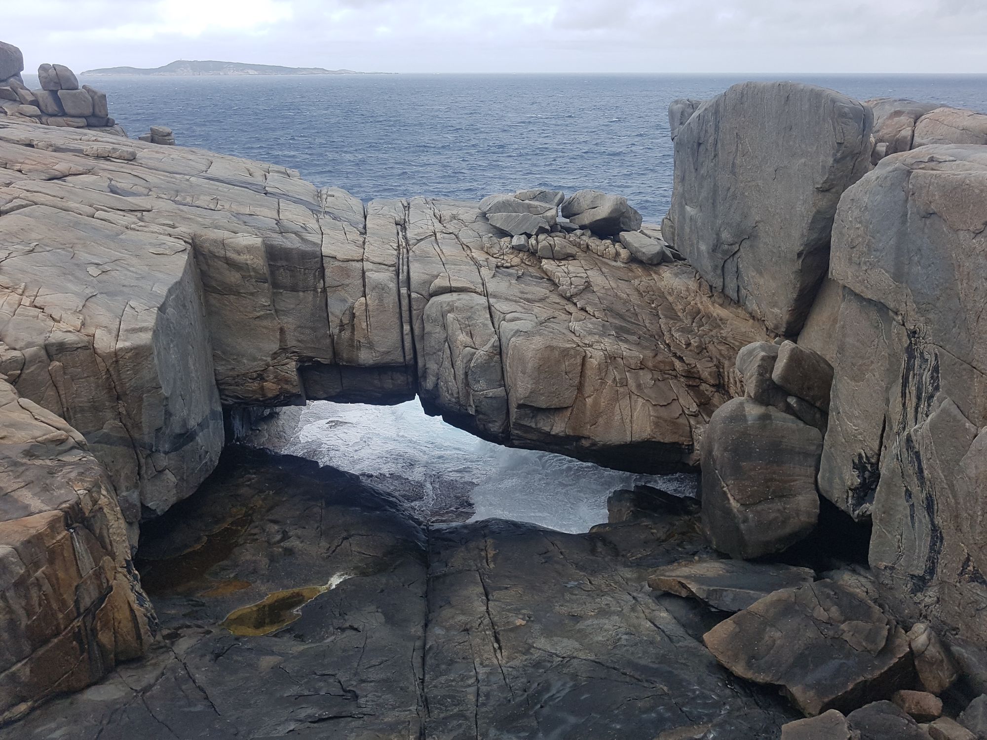 On our last morning before driving back home, we ate breakfast at Dome. Dome is a chain café within WA and the Albany Dome was situated in a cool old historic building. Ben got his usual favourite croissant whilst I munched on some toasted banana bread. After brekkie we set off to Torndirrup National Park. This national park encompasses the peninsula that protects Princess Royal Harbour. The national park contains stunning rock coastal rock formations including the Blowholes, Natural Bridge and the Gap, a lot of the formations are comprised of Gneiss and were formed during the collision and then separation of the Australian and Antarctic plates.