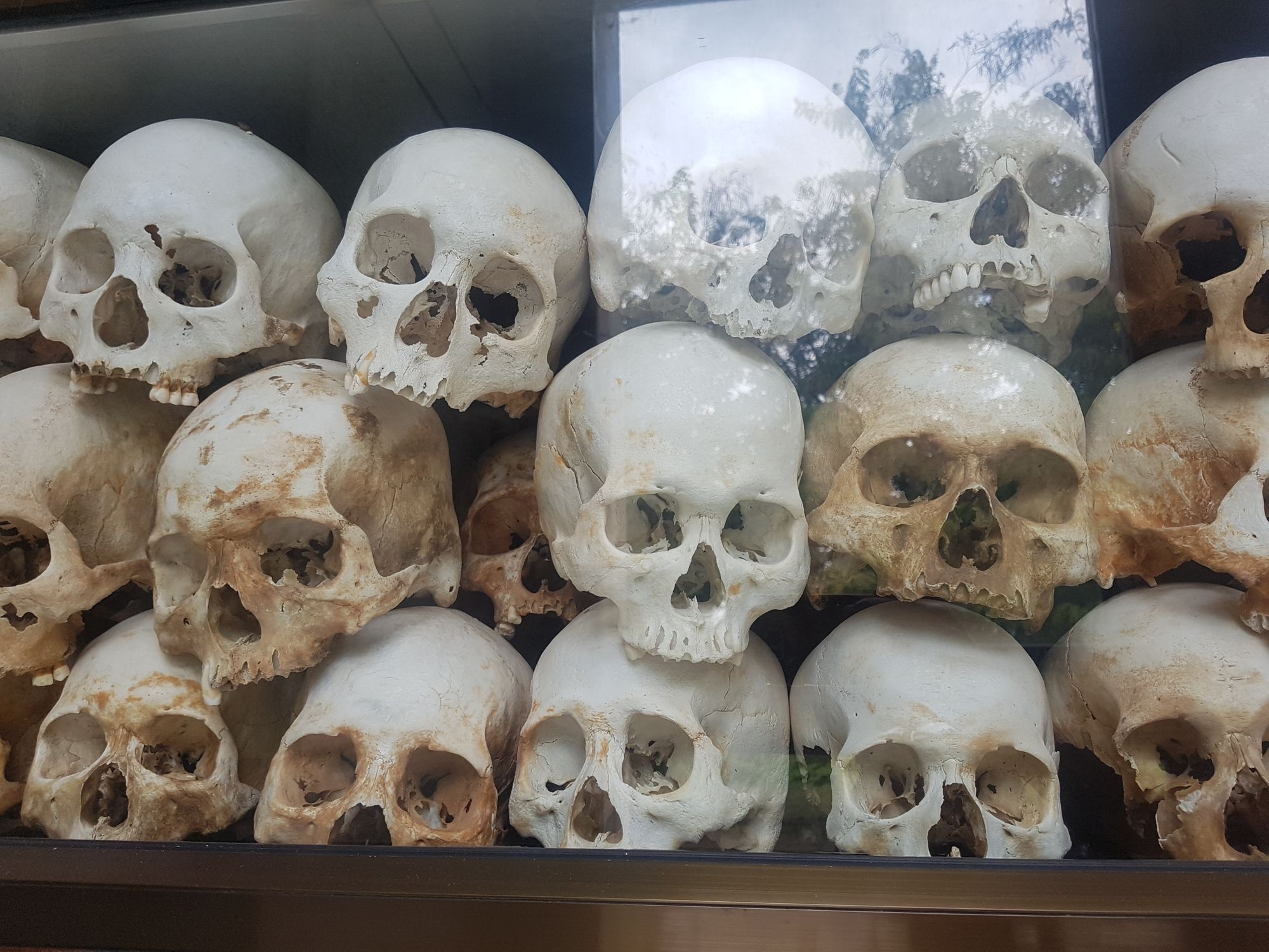 The remains of 8985 people, many of whom were bound and blindfolded, were exhumed in 1980 from mass graves in this one-time longan orchard; 43 of the 129 communal graves here have been left untouched. Fragments of human bone and bits of cloth are scattered around the disinterred pits. More than 8000 skulls, arranged by sex and age, are visible behind the clear glass panels of the Memorial Stupa, which was erected in 1988. The audio tour includes stories by those who survived the Khmer Rouge, plus a chilling account by Him Huy, a Choeung Ek guard and executioner, about some of the techniques they used to kill innocent and defenseless prisoners, including women and children. There's also a museum here with some interesting information on the Khmer Rouge leadership and the ongoing trial.