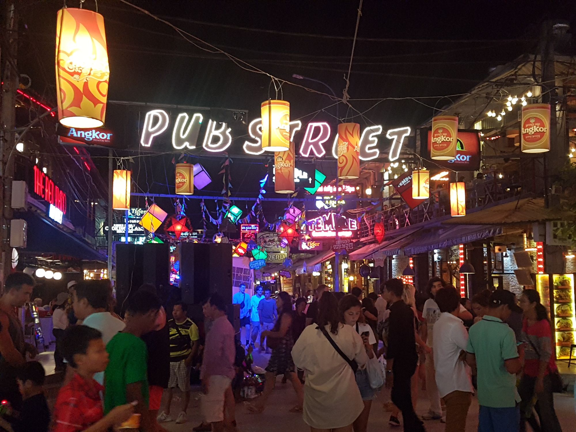 Officially titled “Street 8”, Pub Street is the center of action as the night falls in Siem Reap. The street, starting off at the Red Piano Restaurant and ending at the Banana Leaf Restaurant, is a 100m stretch of road speckled with neon lit clubs, bars, restaurants, and vendors. With dancers in the street, and strobe lights it is far removed from the slumness of the Pub Street in Phnom Penh, but not as crazy pardy-pardy as Khao San Road in Bangkok. Was definitely my happy medium. Come night time, Pub Street is blocked off to traffic, making it a relaxing and safe place to stroll, dance, and let loose. With a wide variety of culinary treats ranging from Khmer specialties to Western favorites offered in food trucks, 50 cent draught beers, and crispy insect munchies to indulge in (again), you can spend your entire night on this lively street and never run out of things to do.