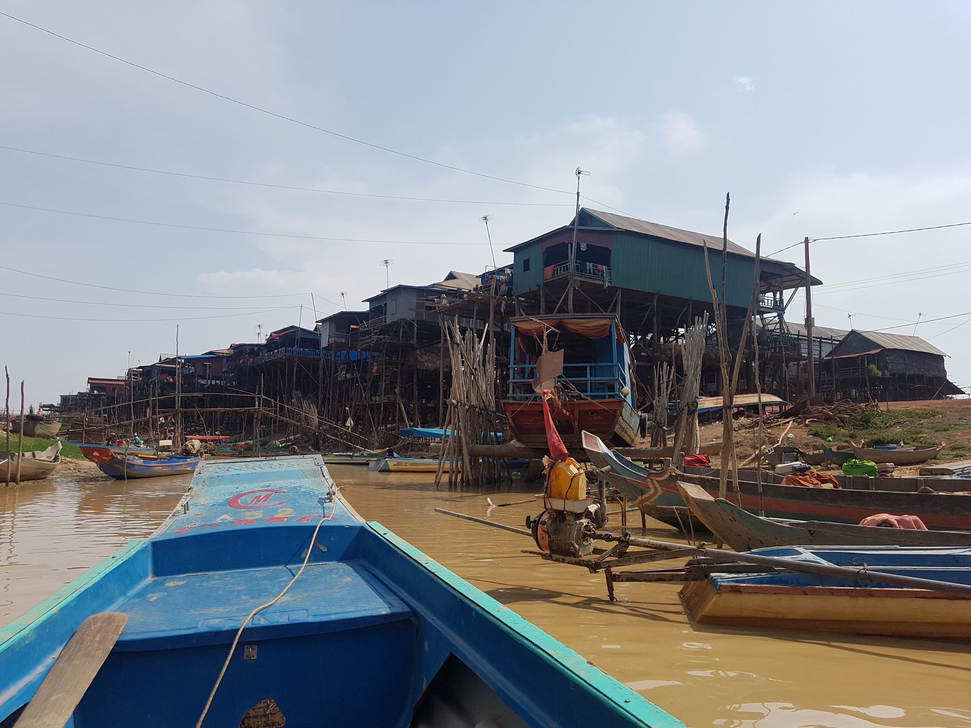 Adventuring off the beaten path is always exciting so we decided to get a taste of local culture and visit one of the floating villages, Kampong Phluk. As it was something that we didn’t get a chance to do in Bangkok. Most sources on the web today call Kampong Phluk village a “floating village,” but that actually depends on what month you go. The hand-made houses are suspended by 16-foot stilts like some wild act in a circus. During the rainy season (June to November) the water level rises to just about the height of the structures. The best time to go, however, is in December or January when the water level drops and you witness temples and schools balancing on thick, wooden trunks. We obviously visited in the peak of the dry season, when the river and lake had retreated and the stilts of the houses were fully revealed. Life is hard for the locals of Kampong Phluk.