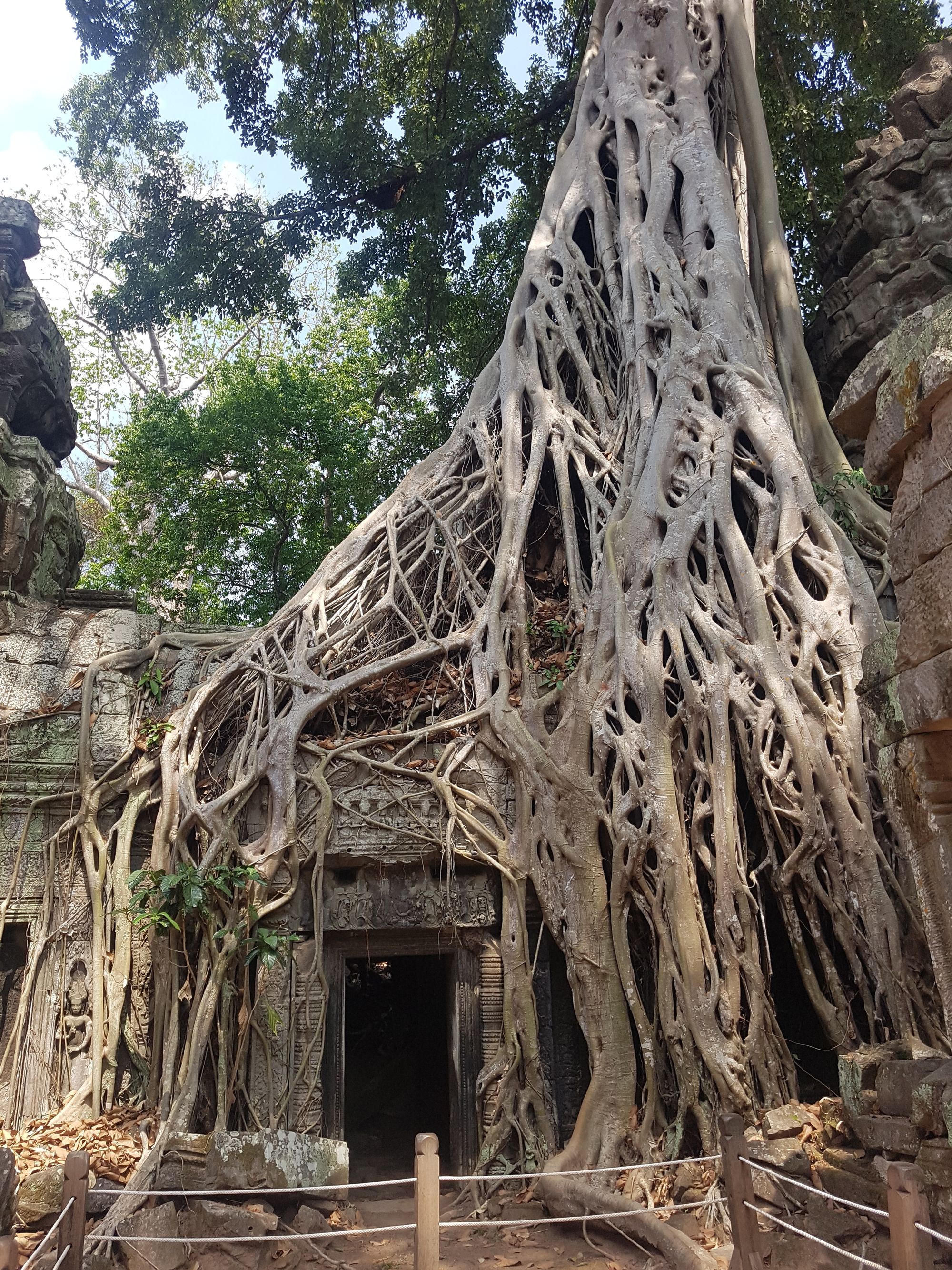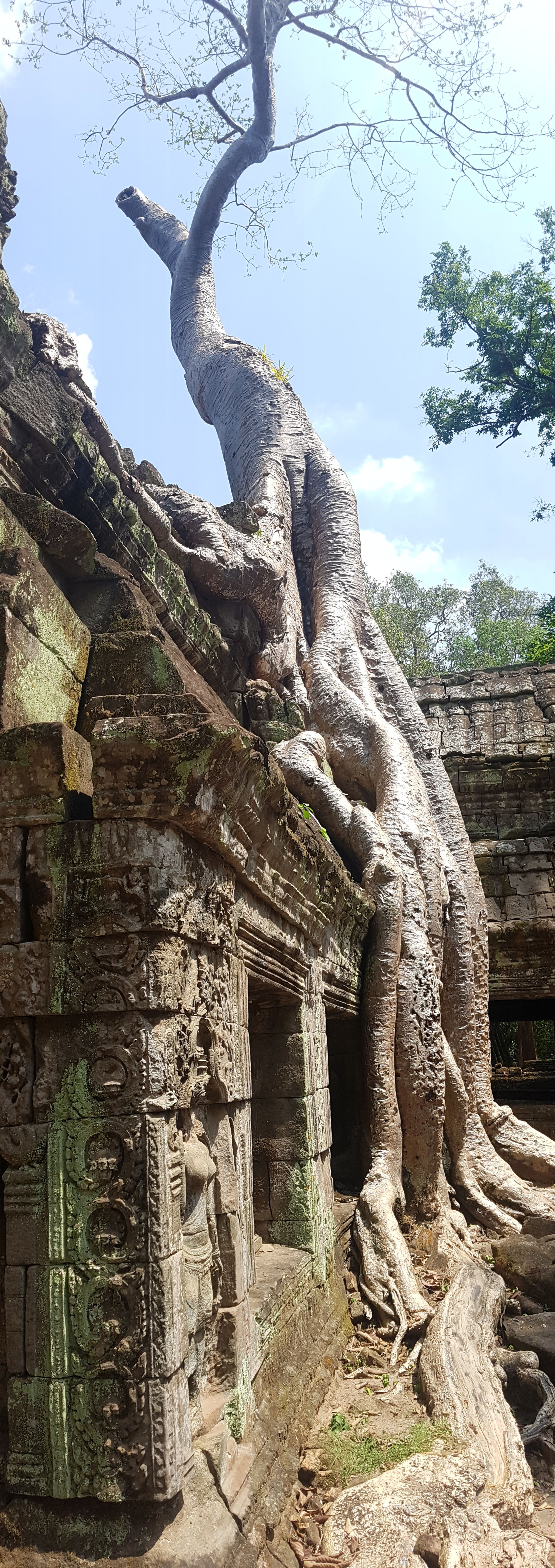 When Lara Croft and Tomb Raider pushed Hollywood images of Ta Prohm temple into cinemas around the world in 2001, they consolidated the case for Cambodia as a tourist destination. Little over fifteen years later, millions of visitors flock to Siem Reap each year, many of whom will have their picture taken under “that tree” that Angelina Jolie stood upon during one of the movie’s action scenes. Ta Prohm is a tourist favourite, as is often listed as one of the big three to visit on the itinery to Angkor Archaeological Park. But in all honesty, Ta Prohm was my favourite and was a mesmerizing temple to visit. In fact, it is probably the decision not to clear the site of trees, and leave some of the most impressive jungle/ruin take-overs in place, that made it one of the most atmospheric and most photographed of all the temples. Ta Prohm’s original name was Rajavihara, meaning “monastery of the King”. It was built as a Mahayana Buddhist monastery and university.